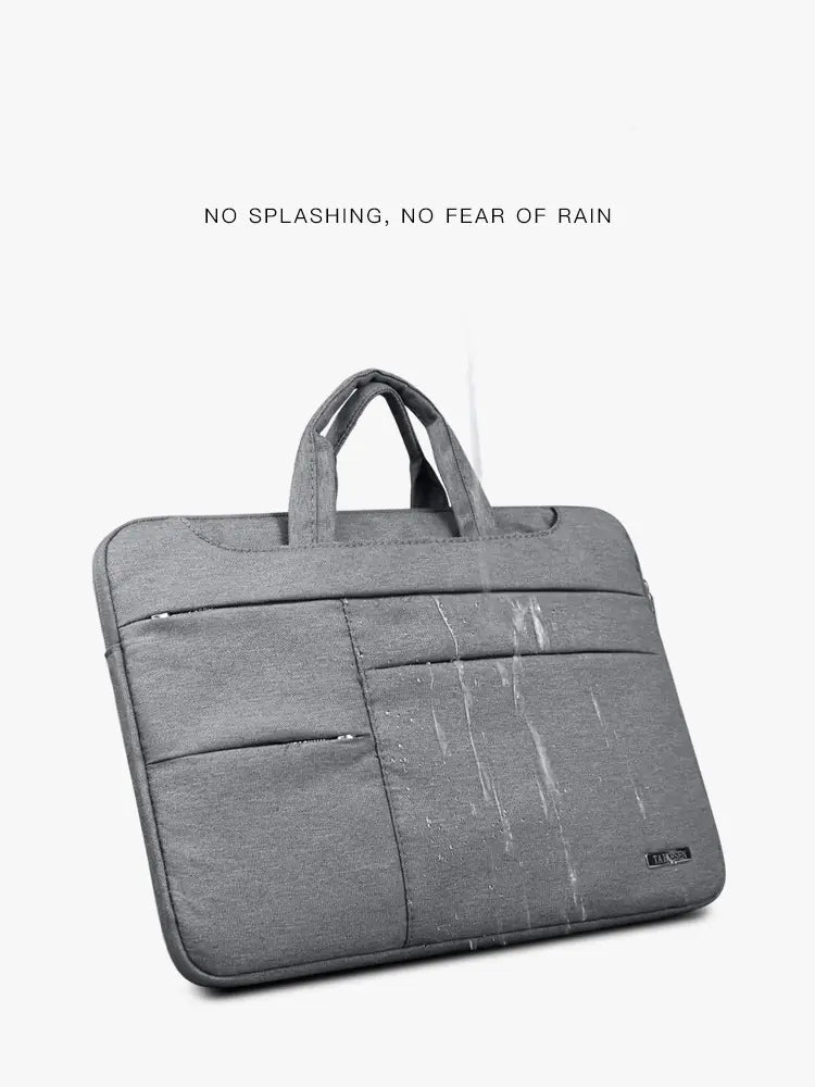Discover the ultimate protection for your laptop with our waterproof laptop bag, designed to fit MacBook Air and Pro models of 13.3, 14, and 15.6 inches. This sophisticated laptop sleeve combines style with functionality, ensuring your device stays safe from water, wear, and shocks.